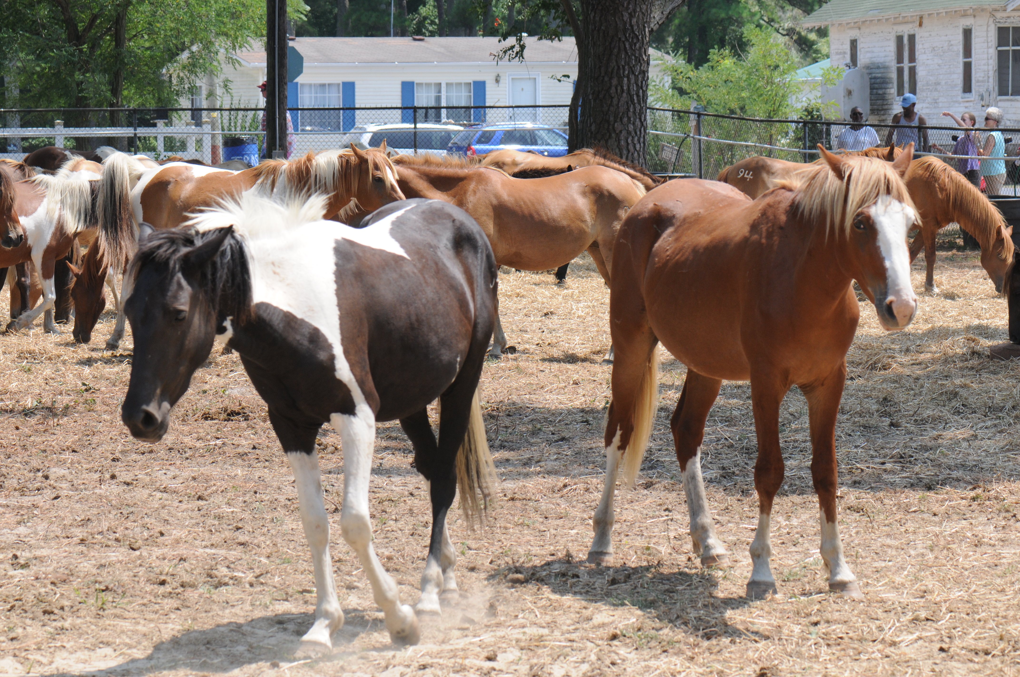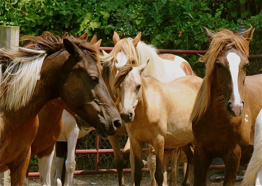 A few hours later, Amy and I loaded the kids in the Jeep and headed to Chincoteague to witness the penning of the ponies from yesterday’s run from Assateague. Madelyn was especially excited. She has been a “horse girl” since she was two, and she knew all about the pony run from reading Marguerite Henry’s Misty of Chincoteague. I didn’t know much more than the horses were corralled on the southern tip of Assateague, brought over to Chincoteague through the wildly popular 3-minute pony swim across the channel separating the two islands, and then auctioned. There was a carnival, too, which we were all looking forward to.