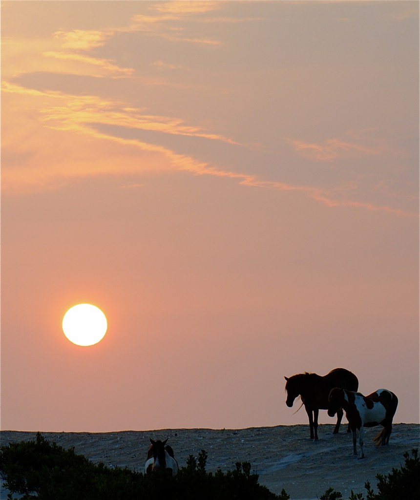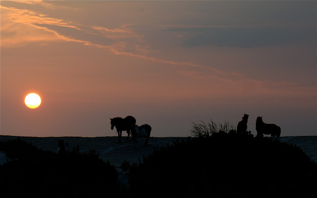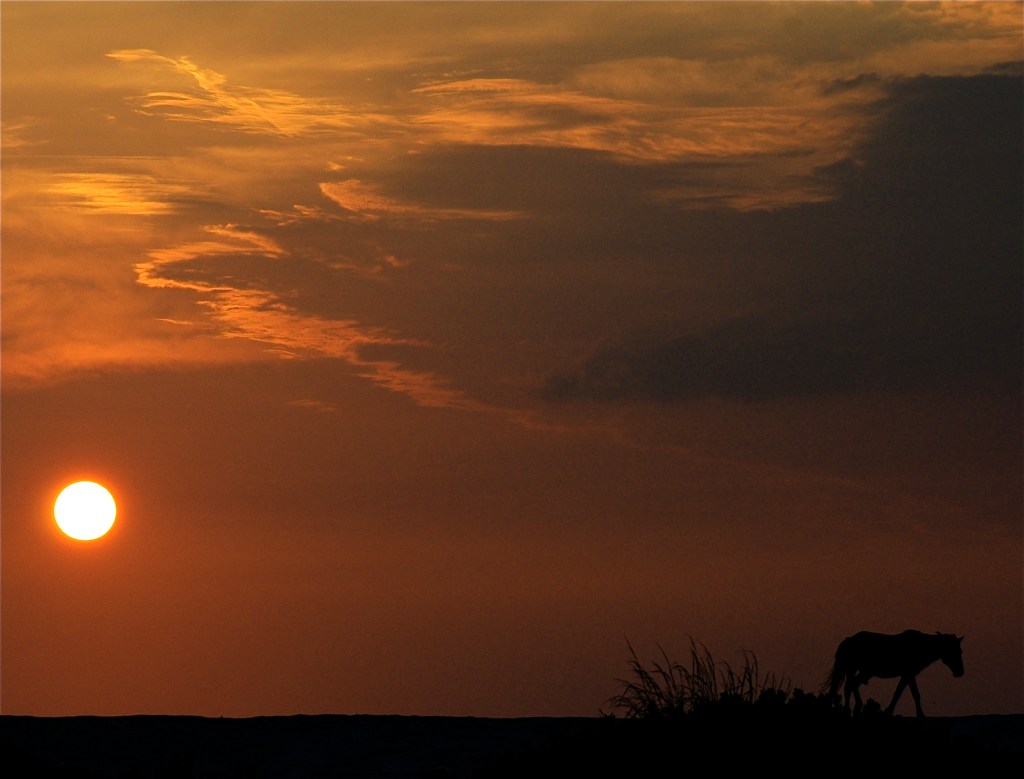 Ten hours earlier I knew nothing of the cries. When we stepped outside of the bayside condo to head south toward the national seashore, the black sky brought nothing but a humid, cool breeze and a hope to capture the wild horses silhouetted against a rising sun.