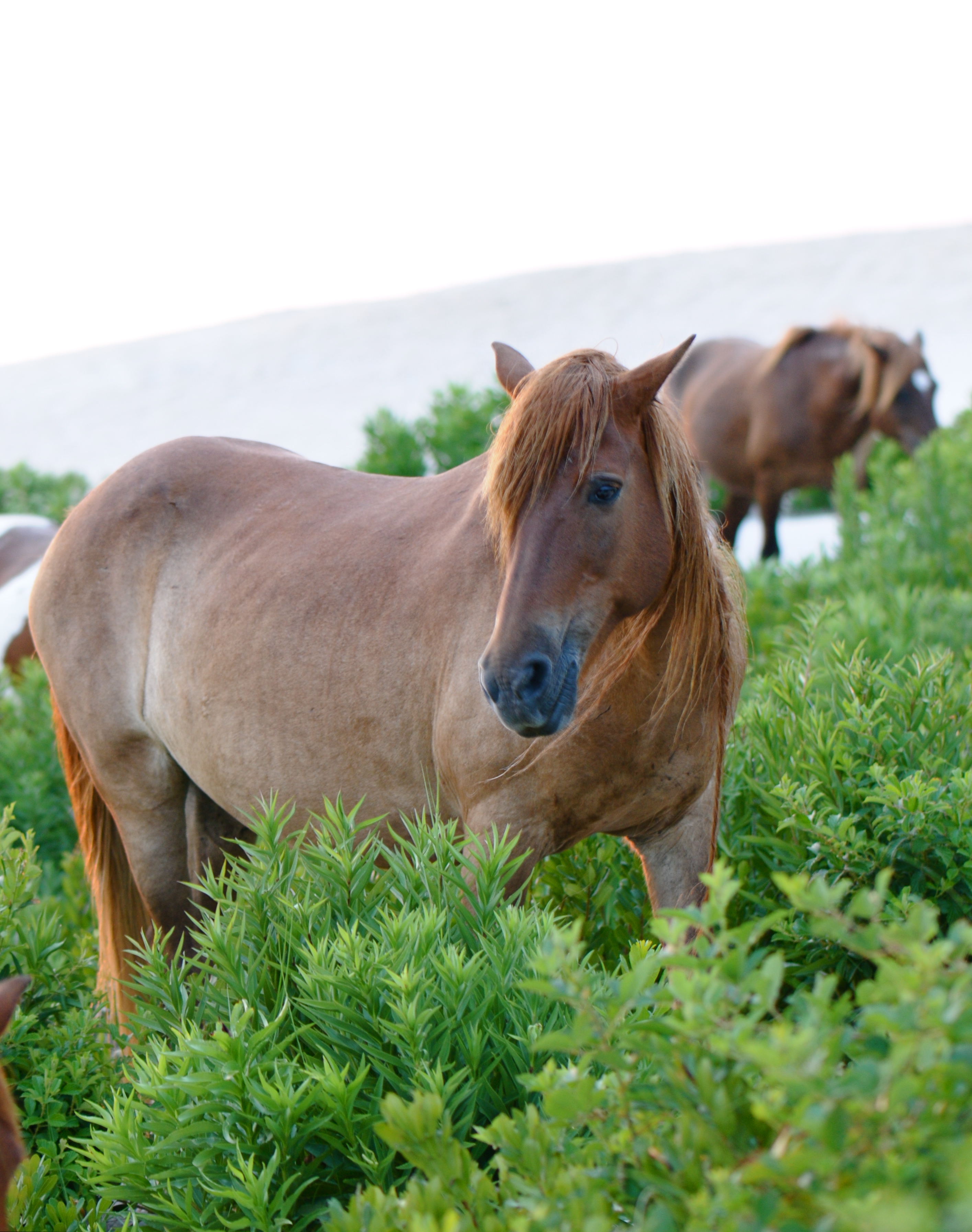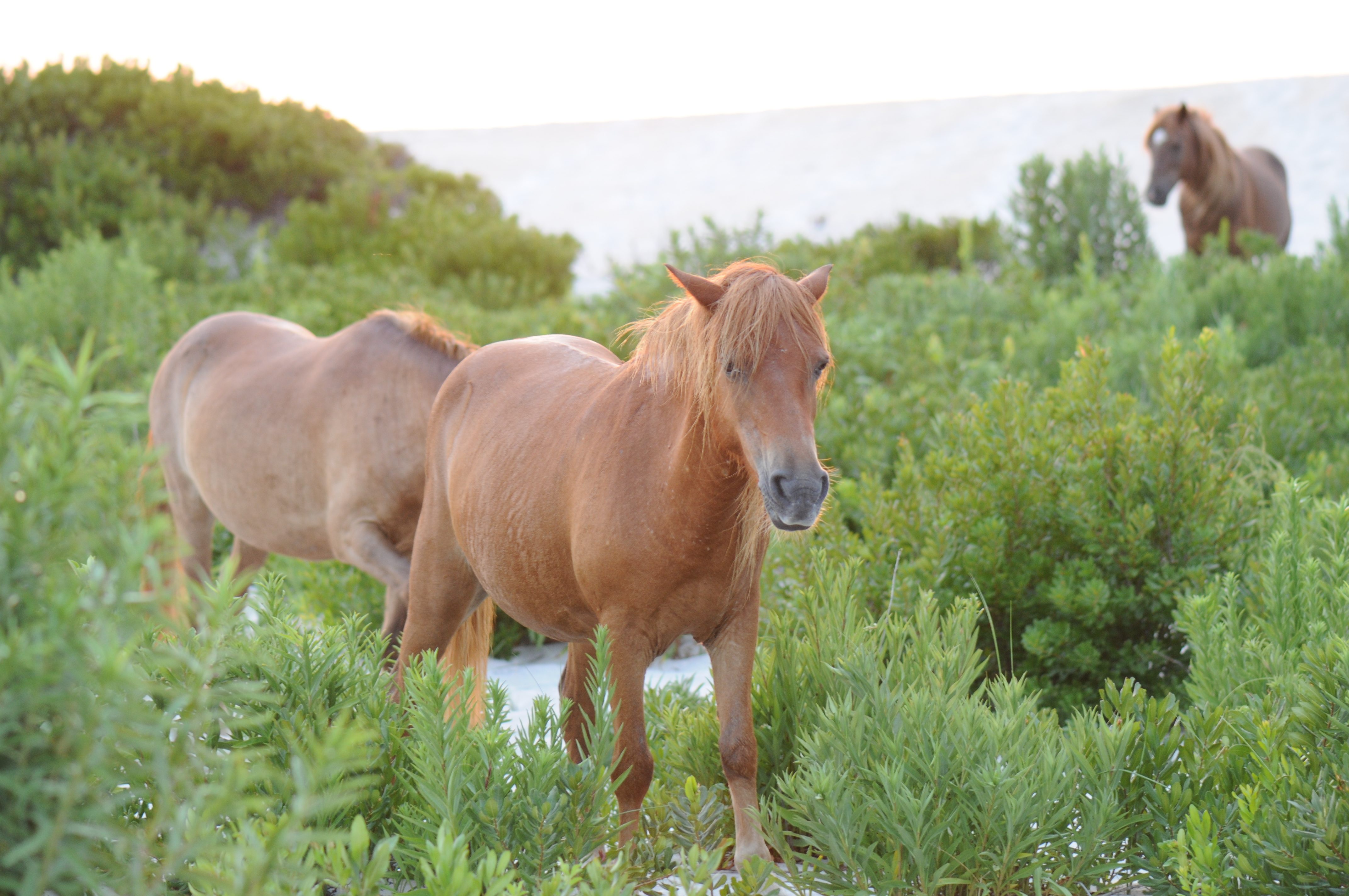 The sun had since broken the horizon on the Atlantic, but the high dunes kept it hidden from us as we sought out the ponies. On our third and final sweep of the camps, I noticed a few pintos and chestnut-brown ponies emerging from the dune grasses and wandering through the campsites. As quietly as possible, we gathered our gear and headed toward them.
