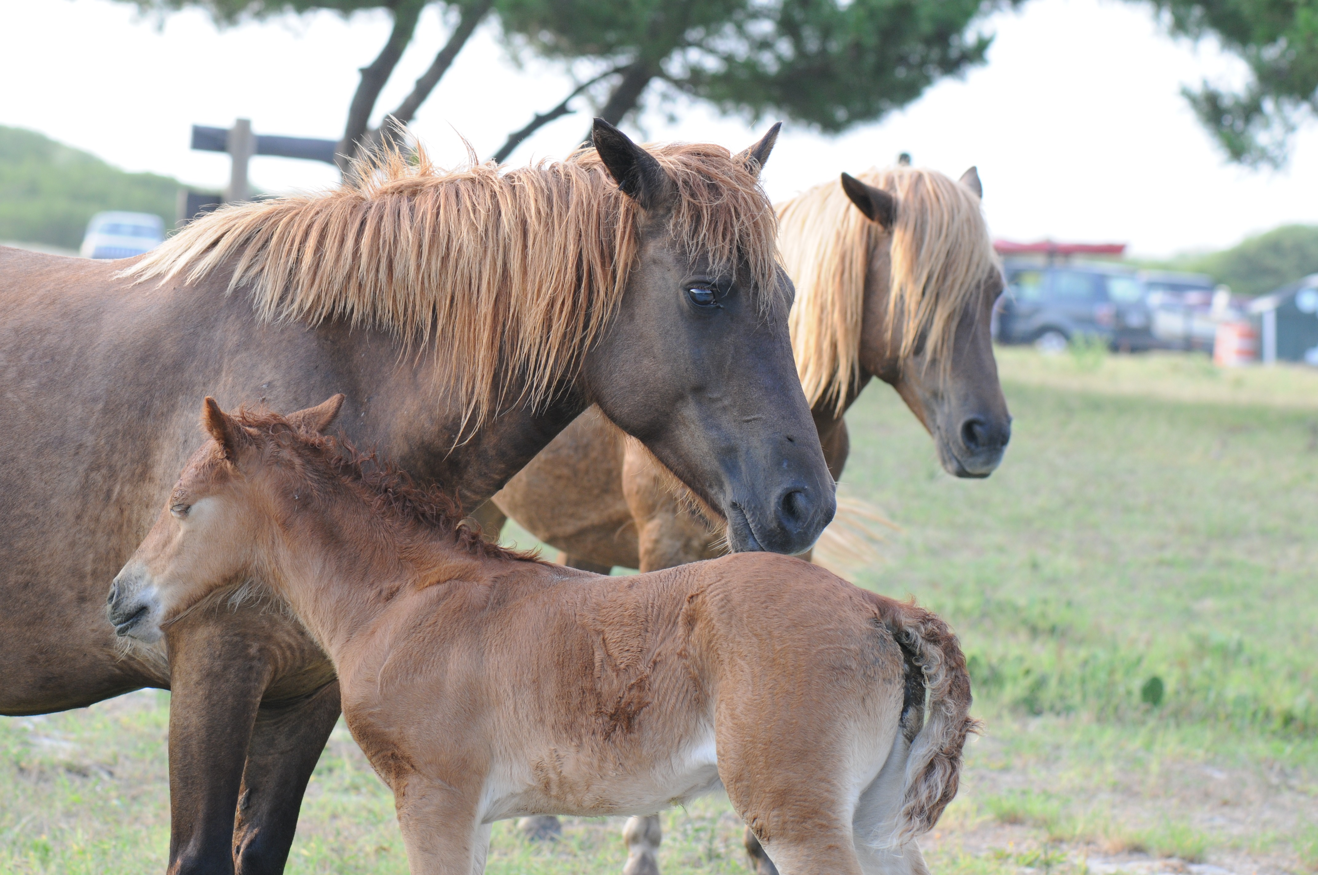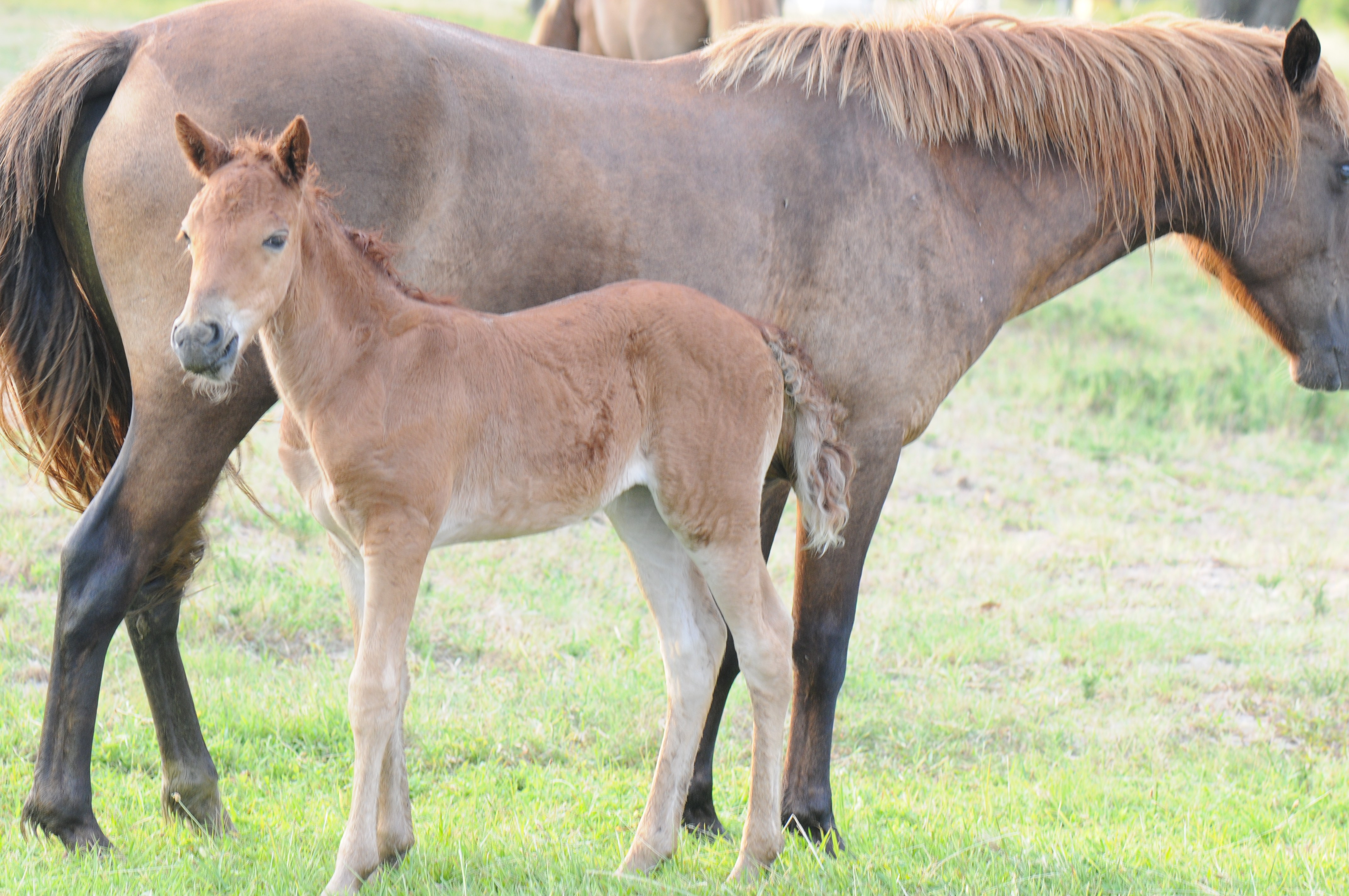 We packed up our gear and headed back toward the main highway, grateful to have lived so fully, so early in the day, when most of the east coast still slept. We were about 500 yards from turning left and then off the island when we spotted a mare and her foal. The bond between the two was unmistakable as we pulled off to the left side of the road and approached them. The foal, only days old it seemed, shifted her weight nervously with little strength in her baby legs, never leaving her mother’s side.