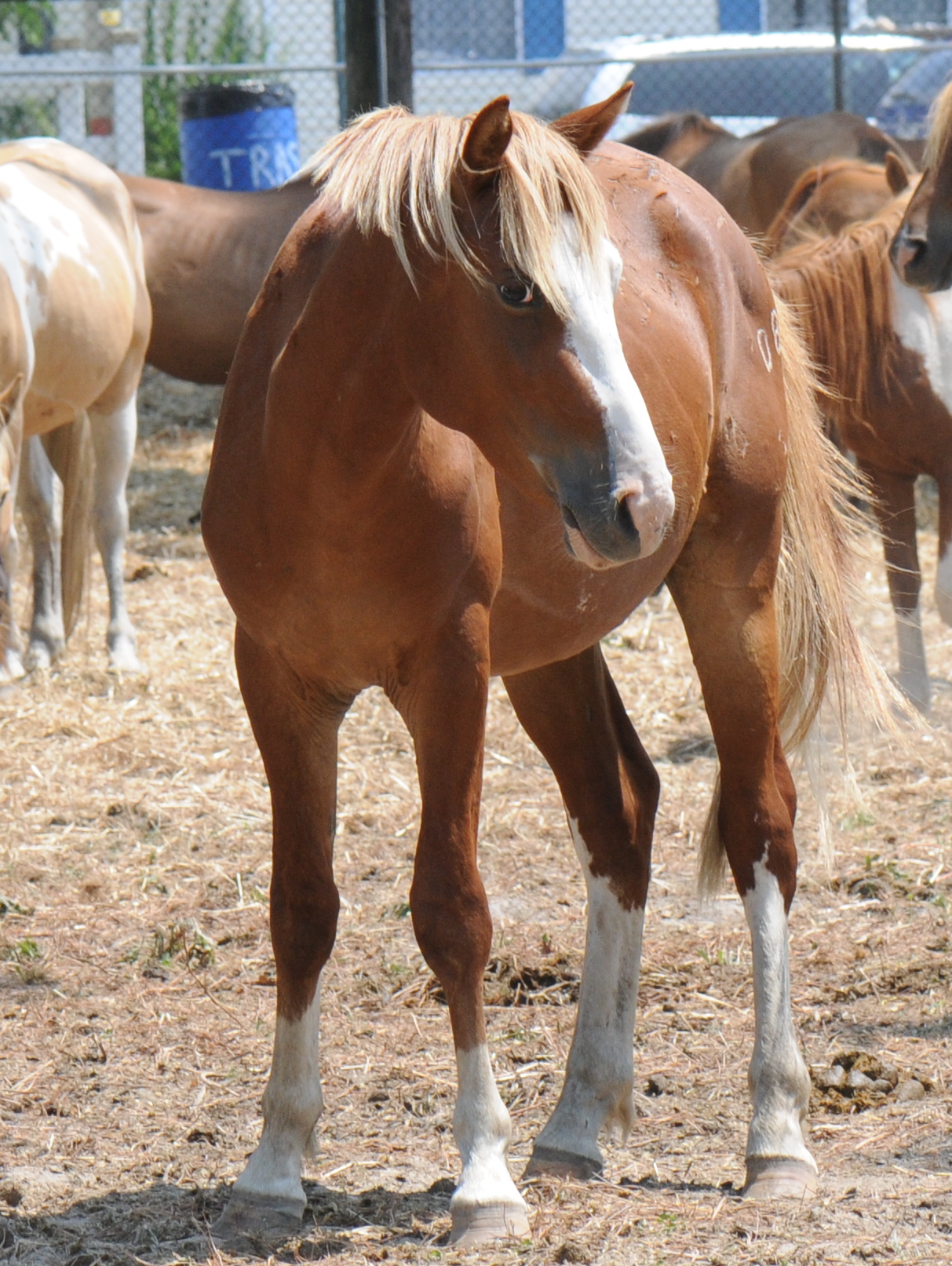 We kept walking toward the abandoned rides tucked in the back of the fairgrounds, and it was Madelyn who first spotted them. Wild ponies, mostly mares, penned up in a dusty patch of land just beyond the lifeless rides.