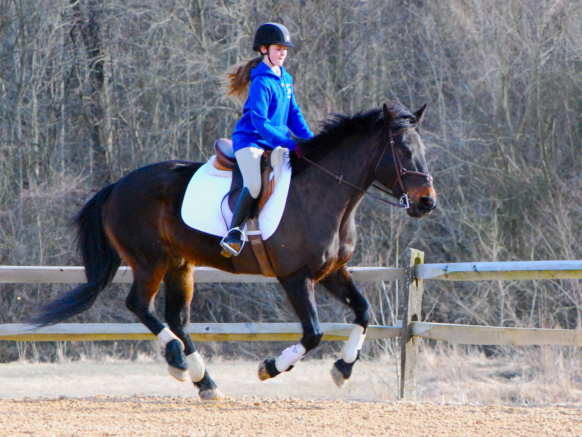 I look at the picture of my daughter, featured above, and I see what it looks like when you let go of fear. I see she believes in herself. She has confidence to go from a trot to a canter. She has courage to approach the next jump and soar into the air.