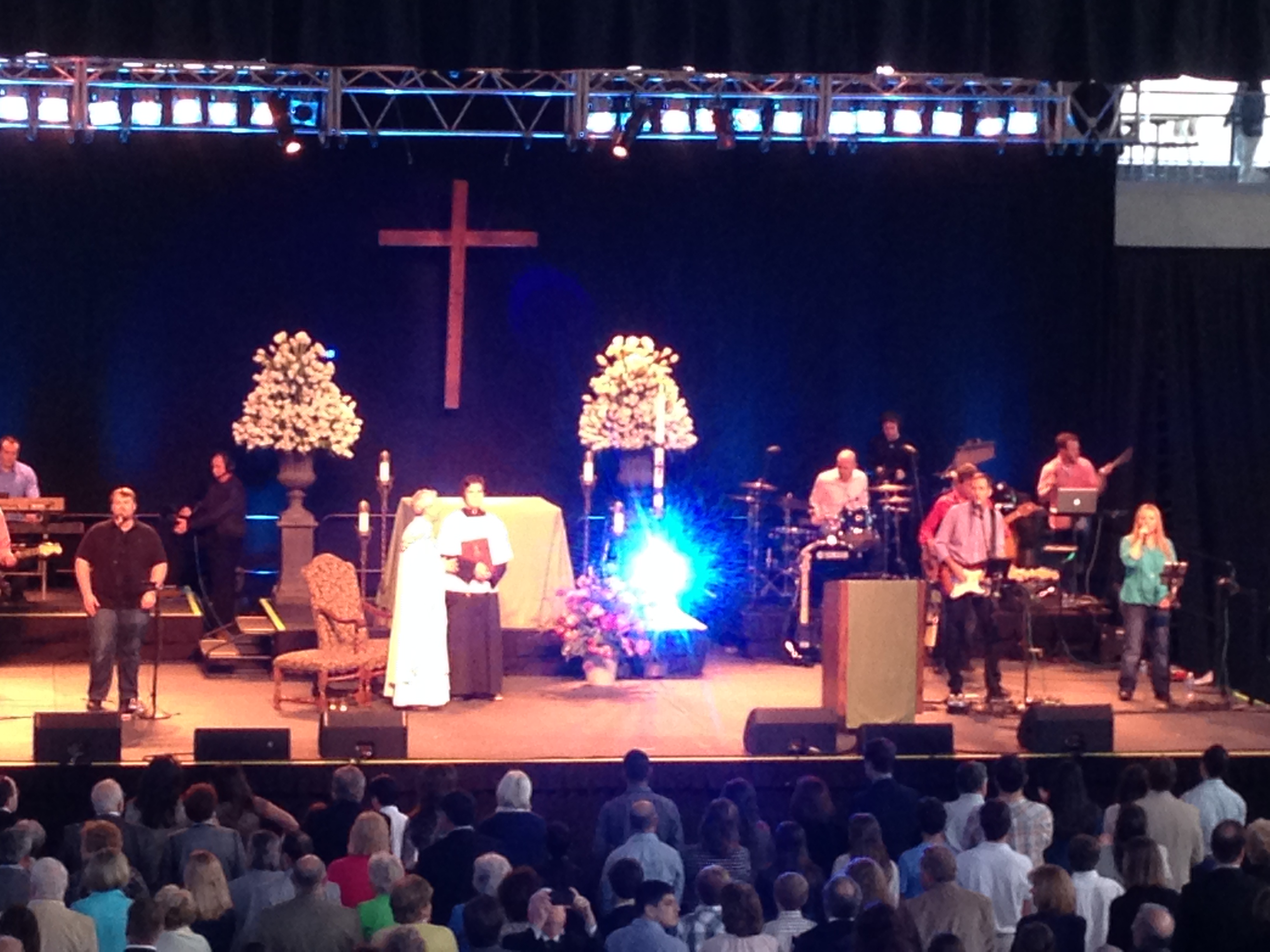The service began with a “warm up” that included sports-like introductions, electric guitars, a lip-syncing contest, and a social media scavenger hunt. This was not your typical Roman Catholic Easter Mass.