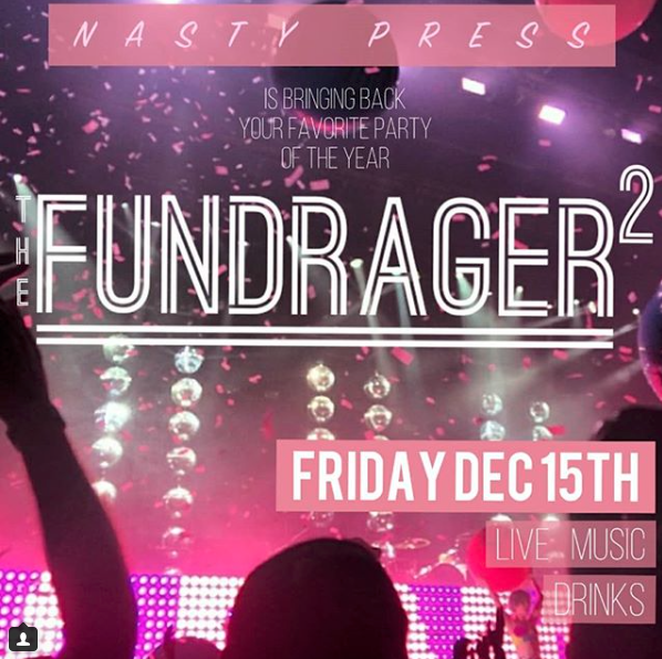 Their upcoming event, FundRager², will be held on Friday December 15, from 8pm to 1am. For more information, including the venue address, please visit their Instagram at @nastypress, email them at thenastypress@gmail.com, or find them on Facebook at Nasty Press.