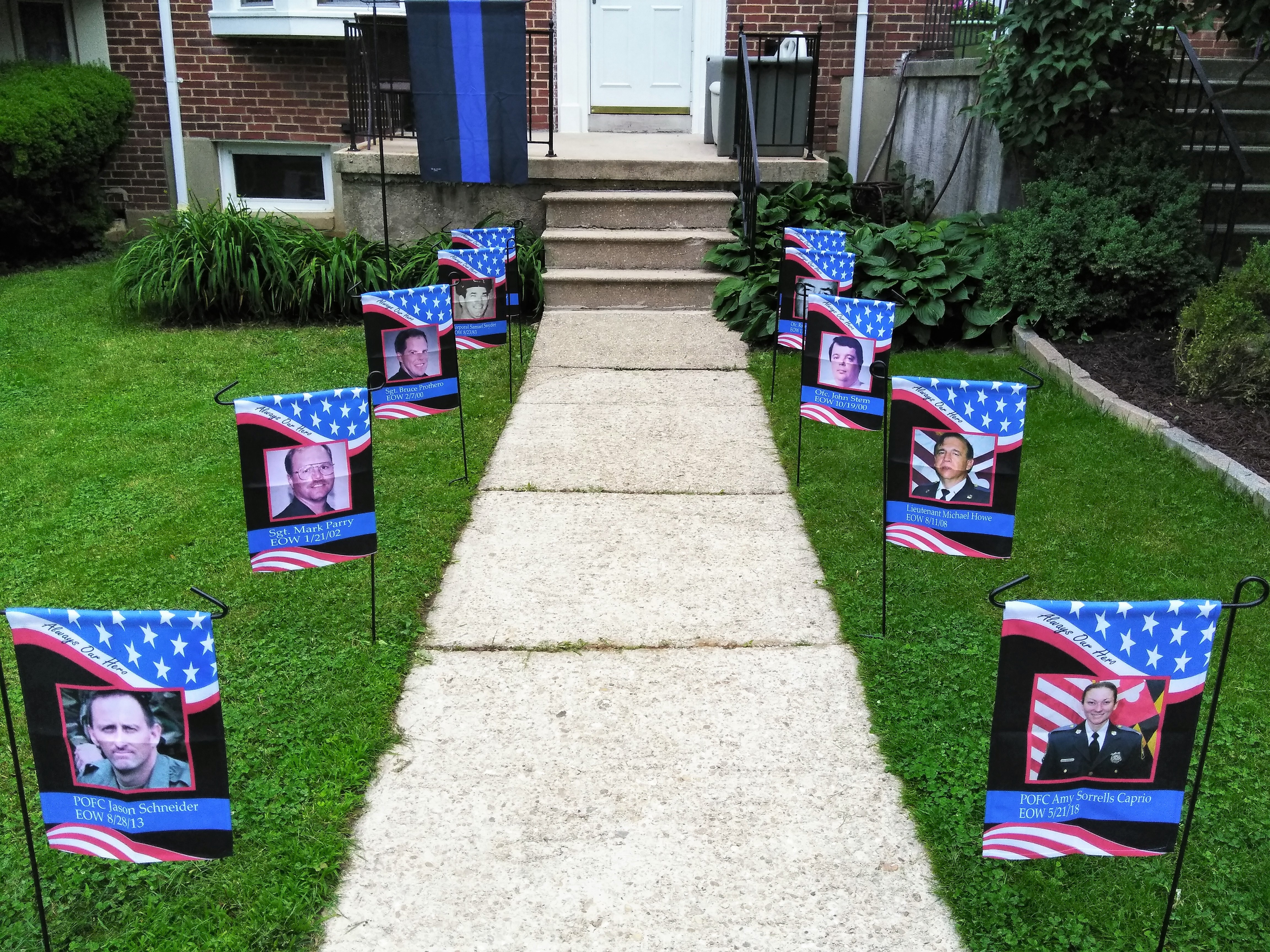 Rob Williams, a resident of Rodgers Forge and Citizens on Patrol leader and volunteer for the last ten years, decided to create a memorial display in his front yard on Regester Avenue, honoring all ten Baltimore County officers who have died in the line of duty.