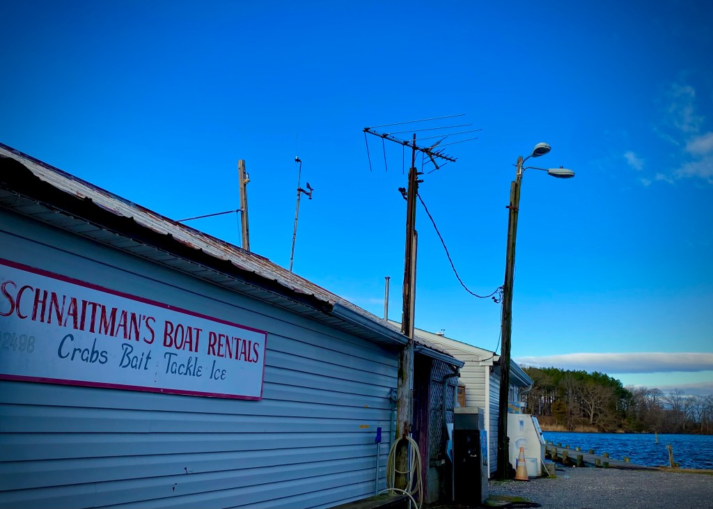 When I reached Schnaitman’s, I stopped the car and stepped outside the weather-rugged docks. The taste of the brackish water on my lips was familiar, as was the old, timeless look of the boathouse. The faded sign on the side of the old gray structure sent me back to 1973, where familiar winds coming off the whitecapped Wye wrapped around me like an old friend. I stood there feeling the tug of a weighty doubler, the sight of bright blue claws clinging to the water-logged chicken neck we had so meticulously tied to string in the pre-dawn light, the sway of the boat as Dad hovered over me with the dip net in hand, ready to scoop the crabs before they were on to what was happening.