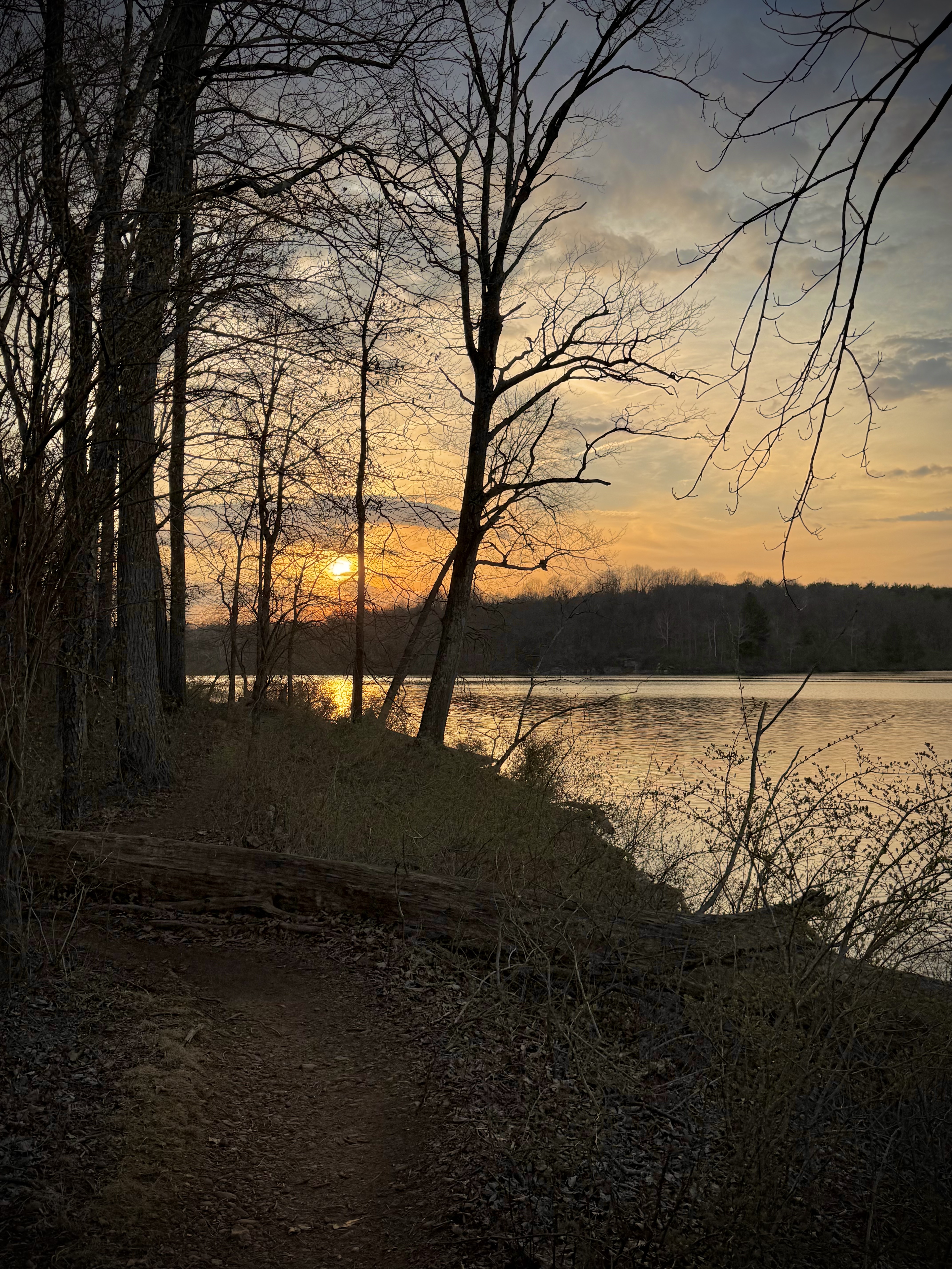 This evening, we decided to do a sunset hike around Loch Raven Reservoir. We were pressed for time, as we didn’t want to get caught on the root-filled trail after sunset. So, I left my “big” camera home and snapped this one shot of the sun setting over the water.