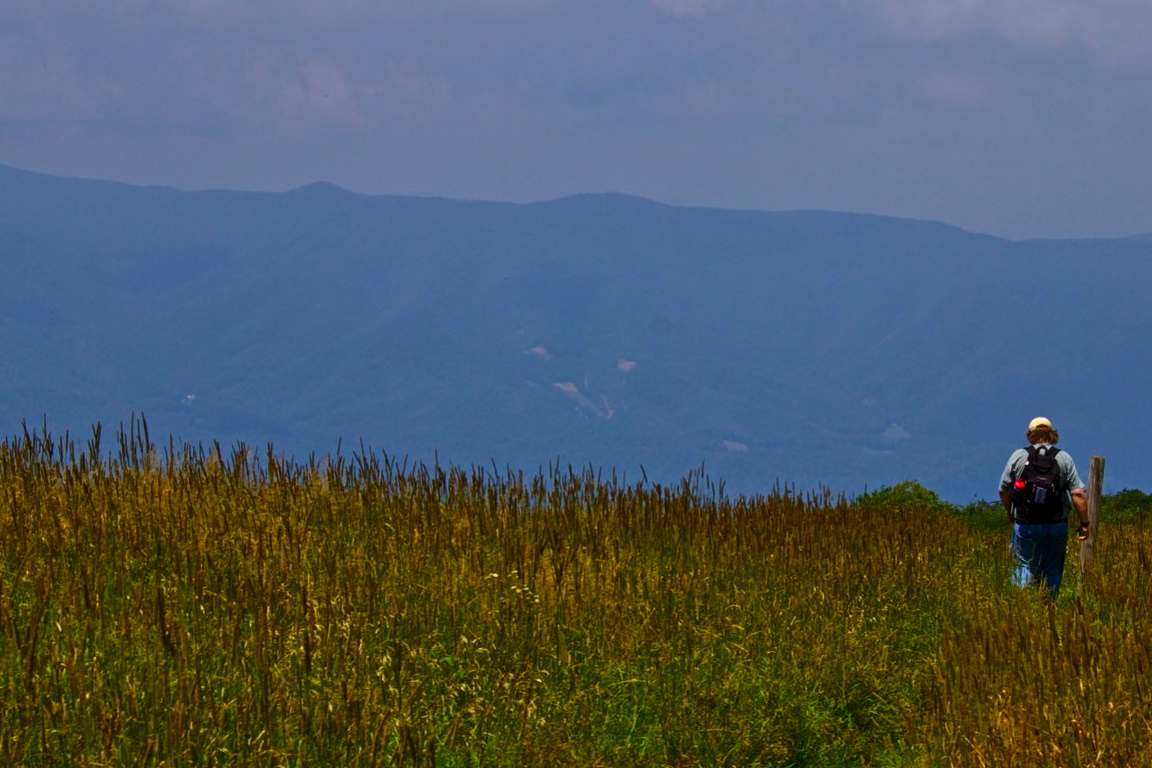 I walk on. Laugh at the fear that loses its grip on me. The What-Ifs turn to So-Whats as I break from the pattern of another walker’s gait, step into the dew-laden grasses that brush the tips of my boots, and follow the old road as it bends to the left and wraps around Big Bald.